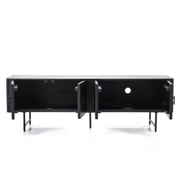 Materiaal: Mango hout & metaalAfmeting: 170 x 45 x 56 cmInfo: 4 deurenPoothoogte: 20 cmAfwerking: GelaktKleur: ZwartMonteren: Ja, poten en greepjes monteren