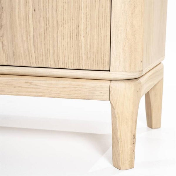 Materiaal: Eikenhout & fineerKleur: NaturelAfmeting: 220 x 40 x 50 cm Poothoogte: 14 cmAfwerking: Gelakt houtOnderhoud: Schoonmaken met een vochtige / droge doekMonteren: Ja, poten monteren