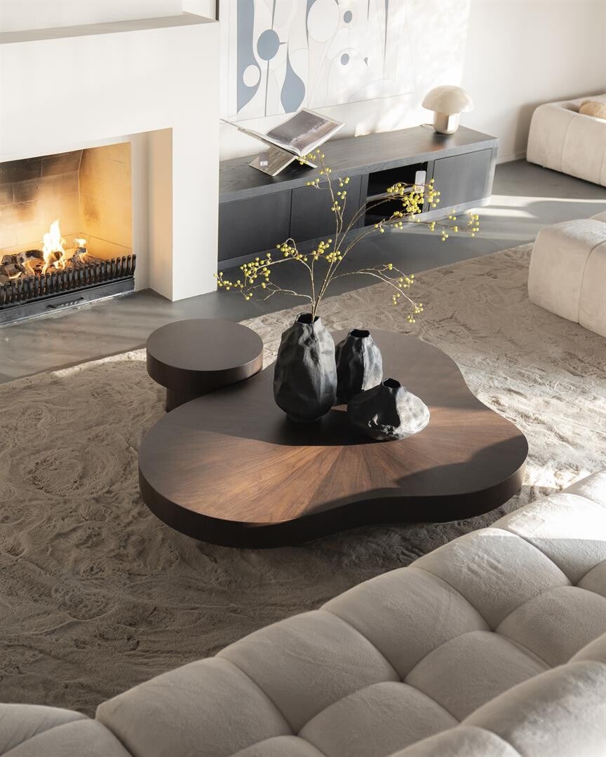 Materiaal: Walnoot fineerAfmeting: 150 x 110 x 25 cmDikte blad: 10 cmAfwerking: GelaktOnderhoud: Schoonmaken met een vochtige / droge doek.