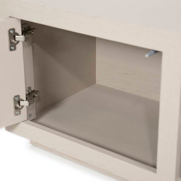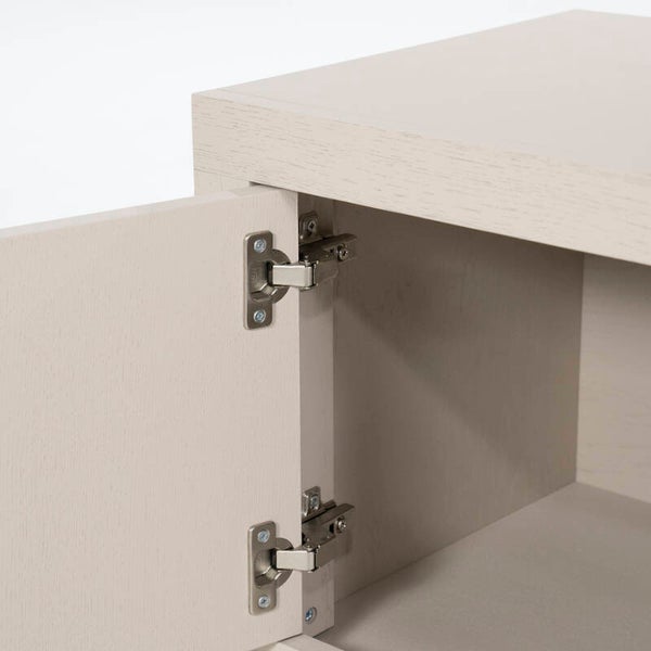 Materiaal: Eiken & Eiken fineerAfmeting: 160 x 42 x 45 cm Info: 2 deurenOpen vakken: 46,5 x 40 x 14 cm | 46,5 x 40 x 14,5 cmKleur: TaupeAfwerking: Gecoat