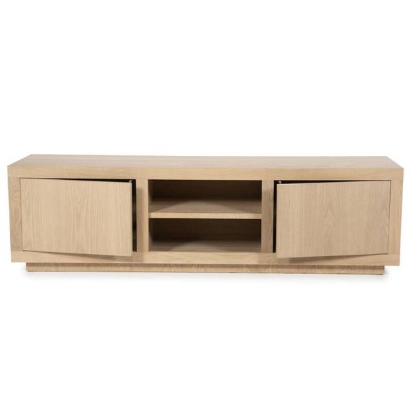 Materiaal: Eiken & Eiken fineerAfmeting: 160 x 42 x 45 cm Info: 2 deurenOpen vakken: 46,5 x 40 x 14 cm | 46,5 x 40 x 14,5 cmKleur: NaturelAfwerking: Gecoat