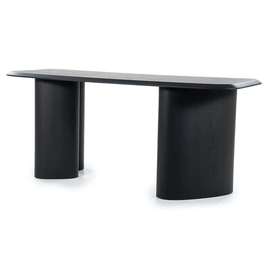 Materiaal: Eiken fineerAfmeting: 220 x 80 x 94 cmAfwerking: GelaktMonteren: JaAfstand tussen poten:111 / 117 cmHoogte: 94 cmDikte blad: 3,6 cmOnderhoud: Regelmatig schoonmaken met een droge / vochtige doek.Maximale draagkracht: 100 kg