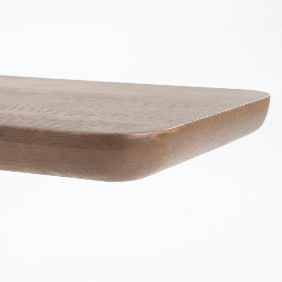 Materiaal: Eikenhout & eikenfineerAfmeting: 200 x 45 x 80 cmDikte blad: 6 cmPoot: 60 x 25Afwerking: GelaktMonteren: Ja, poot monterenOnderhoud: Schoonmaken met een droge/vochtige doek