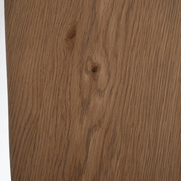 Materiaal: Eikenhout & eikenfineerAfmeting: 300 x 100 x 78 cmDikte blad: 6 cmHoogte tot aan regel: 72 cmAfstand tussen poten: 247 cmAfwerking: GelaktMonteren: Ja, poten monterenOnderhoud: Schoonmaken met een droge/vochtige doek