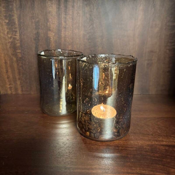 * Het gaat om een handgeblazen product. Afwerking en hoeveelheid bubbels kan verschillen. Met brandende kaarsen/waxinelichten geeft de steenslag in het glas een extra sfeervol effect.