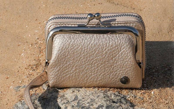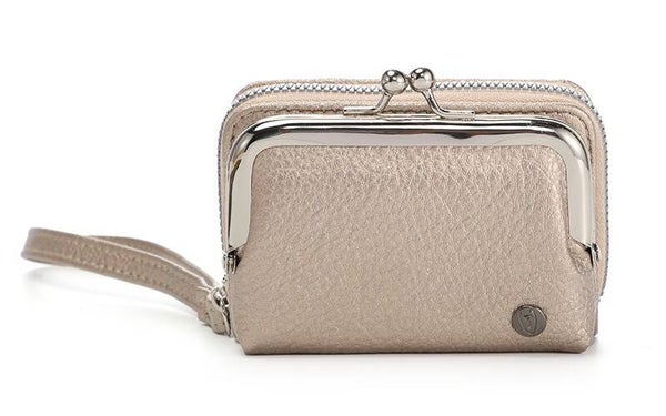 Een fijn en handig klein portemonneetje. Dit fijne portemonneetje bevat twee vakken. Eén daarvan is de klassieke portemonnee met knip met gouden afwerking. Ideaal om je kleingeld in te bewaren! Het tweede vak zit er naast en is afsluitbaar met rits. De Vigo is uitgevoerd in een fantastisch mooi PU (kunstleer) materiaal. Vigo is super handig om mee te nemen!
