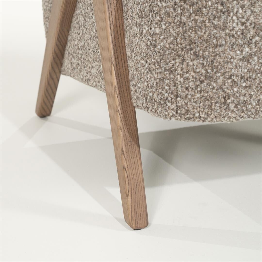 Materiaal: Stof & essenhoutStof: FlouAfmeting fauteuil: 68 x 82 x 80 cmZitdiepte: 57 cmZithoogte: 45 cm Arml. hoogte: 58 cmMonteren: NeeOnderhoud: Niet in direct zonlicht plaatsen, regelmatig stofzuigen.Maximum draagkracht 120 kg.