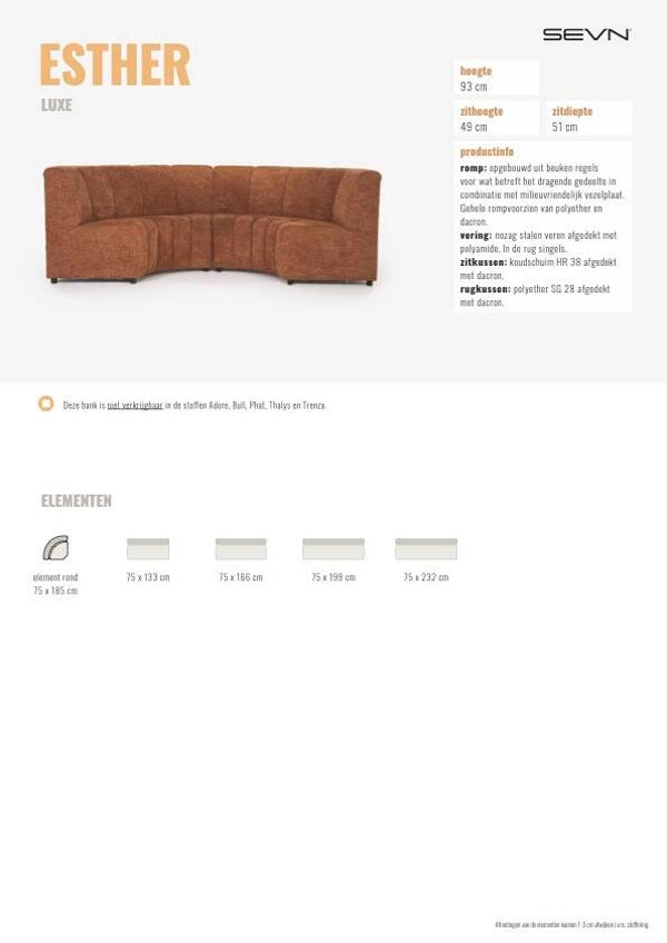 * Loa is niet verkrijgbaar in de stof: Adore, Bull, Phat, Thalys en Trenza