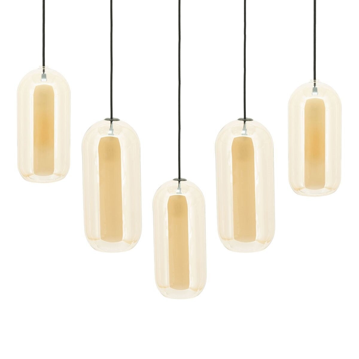 Materiaal: Ijzer & Glas Kleur: Naturel Afmeting: 100 x 15 x 120 cm Snoerlengte / fitting: 120cm / E27 Aanvullende informatie: Afmeting glaswerk, 2x 15x34 cm & 3x 13x28 cm. Voltage 220-240 / Max. 40Watt Afwerking: Geverfd Schoonmaken met een droge doek