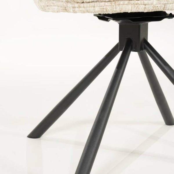 Materiaal: Metaal, foam en polyesterKleur: BeigeStof: GleamAfmeting: 64 x 50 x 88 cmZitdiepte: 46 cmZithoogte: 50 cmAfwerking: GecoatOnderhoud: Regelmatig stofzuigen, niet buiten plaatsen.Maximum draagcapaciteit is 120kg