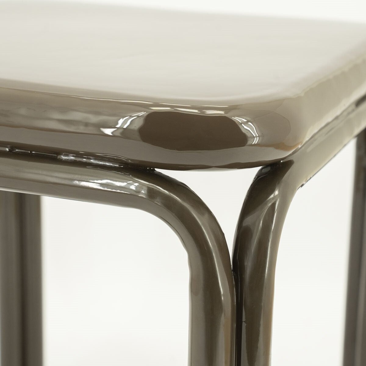 Materiaal: IjzerKleur: DonkerbruinAfwerking: Gecoat en geglazuurdAfmeting: 43 x 43 x 45 cmAanvullende informatie: Maximale draagkracht is 10-15kg, schoonmaken met een vochtige/droge doek