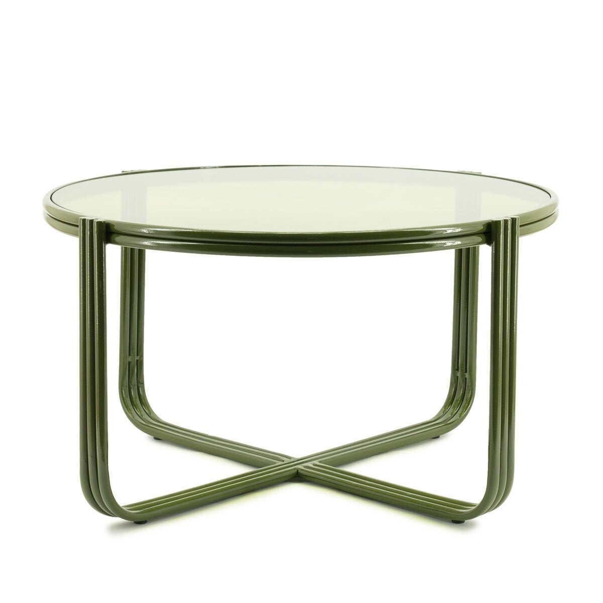 Materiaal: Ijzer & glasKleur: GreenAfwerking: Gecoat Afmeting: 63 x 63 x 35 cmAanvullende informatie: Maximale draagkracht is 10kg, schoonmaken met een vochtige/droge doek