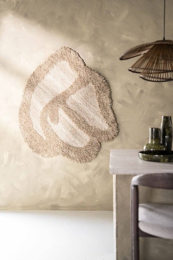 Materiaal: Polyester, wol en houtKleur: BruinAfwerking: -Afmeting: 120 x 120 x 4 cmAanvullende informatie: 7 ophanghaakjes, regelmatig stofzuigen