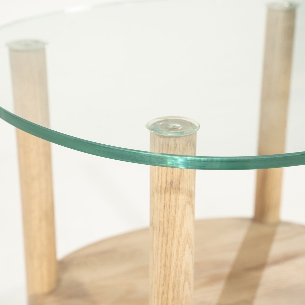 Materiaal: Eiken hout & glasKleur: NaturelAfwerking: GelaktAfmeting: 50 x 45 x 50 cmAanvullende informatie: Schoonmaken met een vochtige/droge doek. Gehard glas. Maximum draagkracht 20 kg.